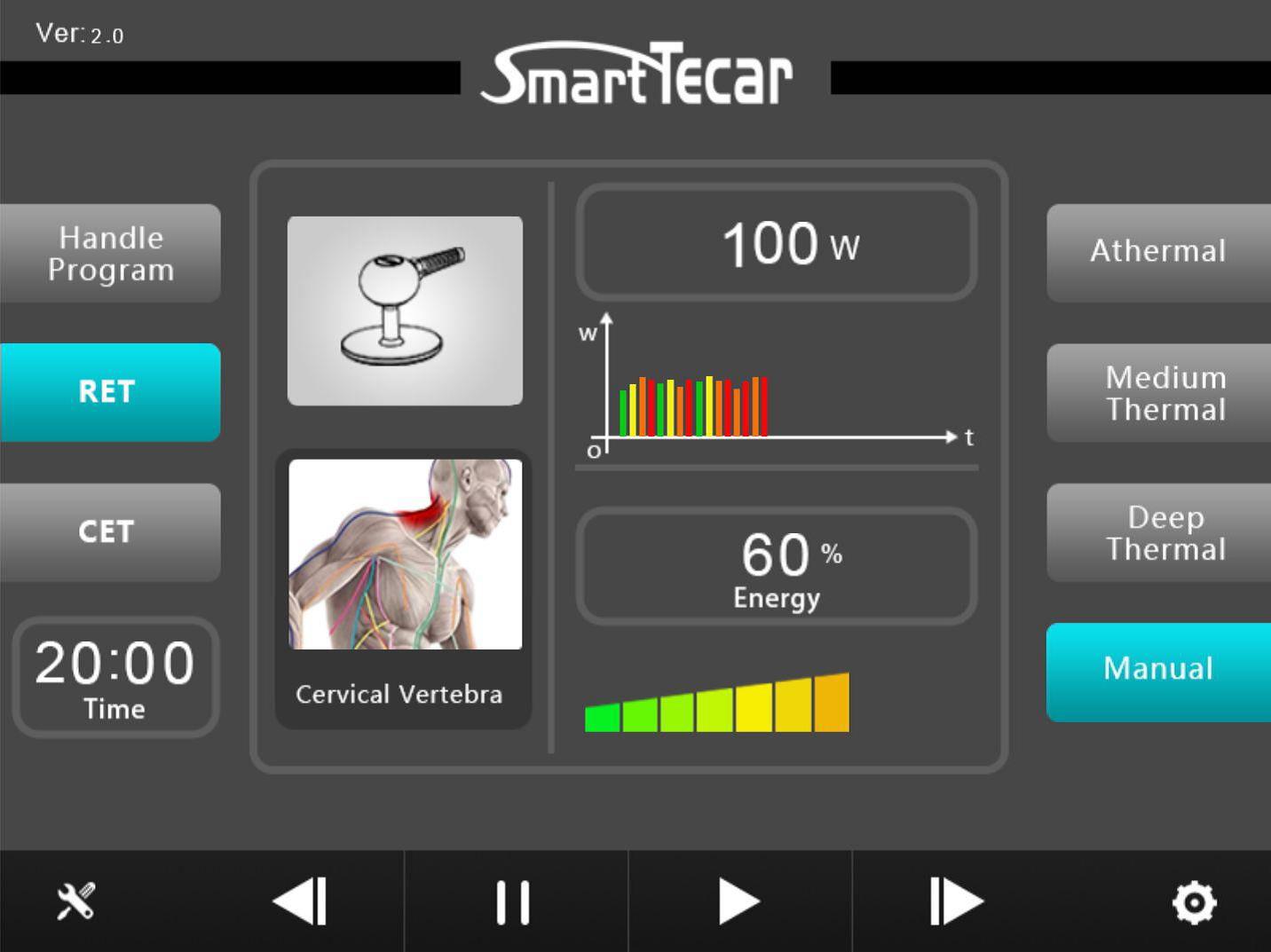 Dva načina delovanja, kapacitivni (CET) in rezistivni (RET), omogočata terapevtu, da enostavno prilagodi terapijo glede na vrsto patologij.
